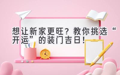 搬新家、装修房子,都是人生大事,大家都会希望能选个好日子,寓意着未来一切顺利。特别是装门,可是新家风水的重要环节,选择一个合适的吉日,更能起到锦上添花的作用。