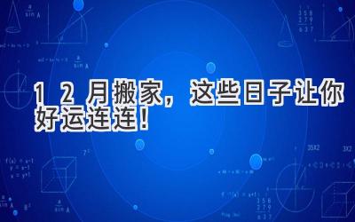 准备搬家,却不知道哪天最吉利?别担心,让星座来帮你!12月马上就要到了,想在年底前搬进新家?别急,咱们先看看12星座搬家的幸运日,再参考一下风水上的说法,帮你找到最适合你的好日子!