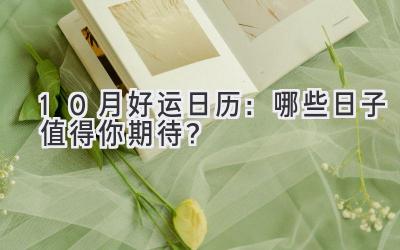 十月,秋风送爽,收获的季节也悄悄来临。不仅是丰收的喜悦,十月也充满了无限的可能性,等待着你去探索和把握。想知道这个月哪些日子值得你特别关注吗?